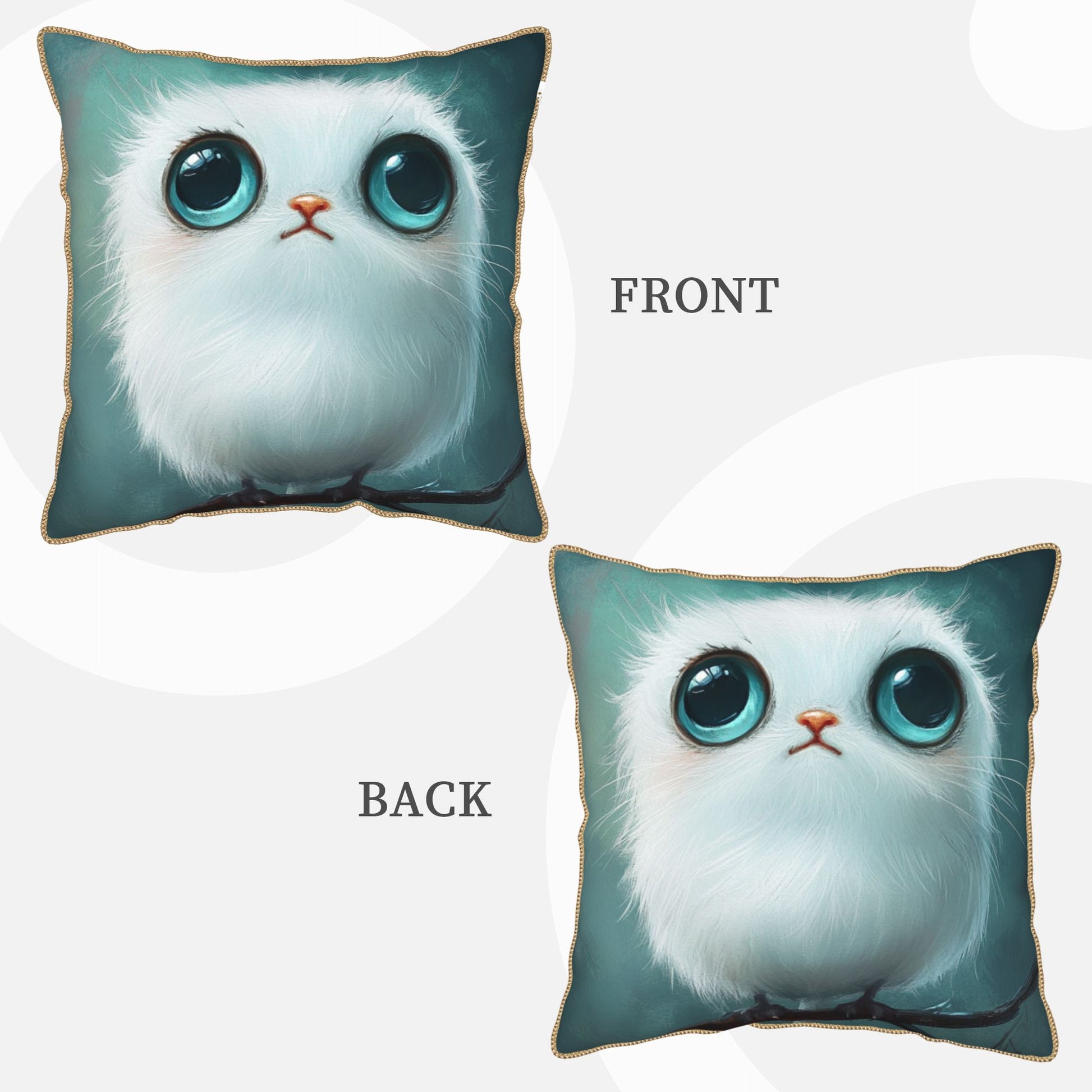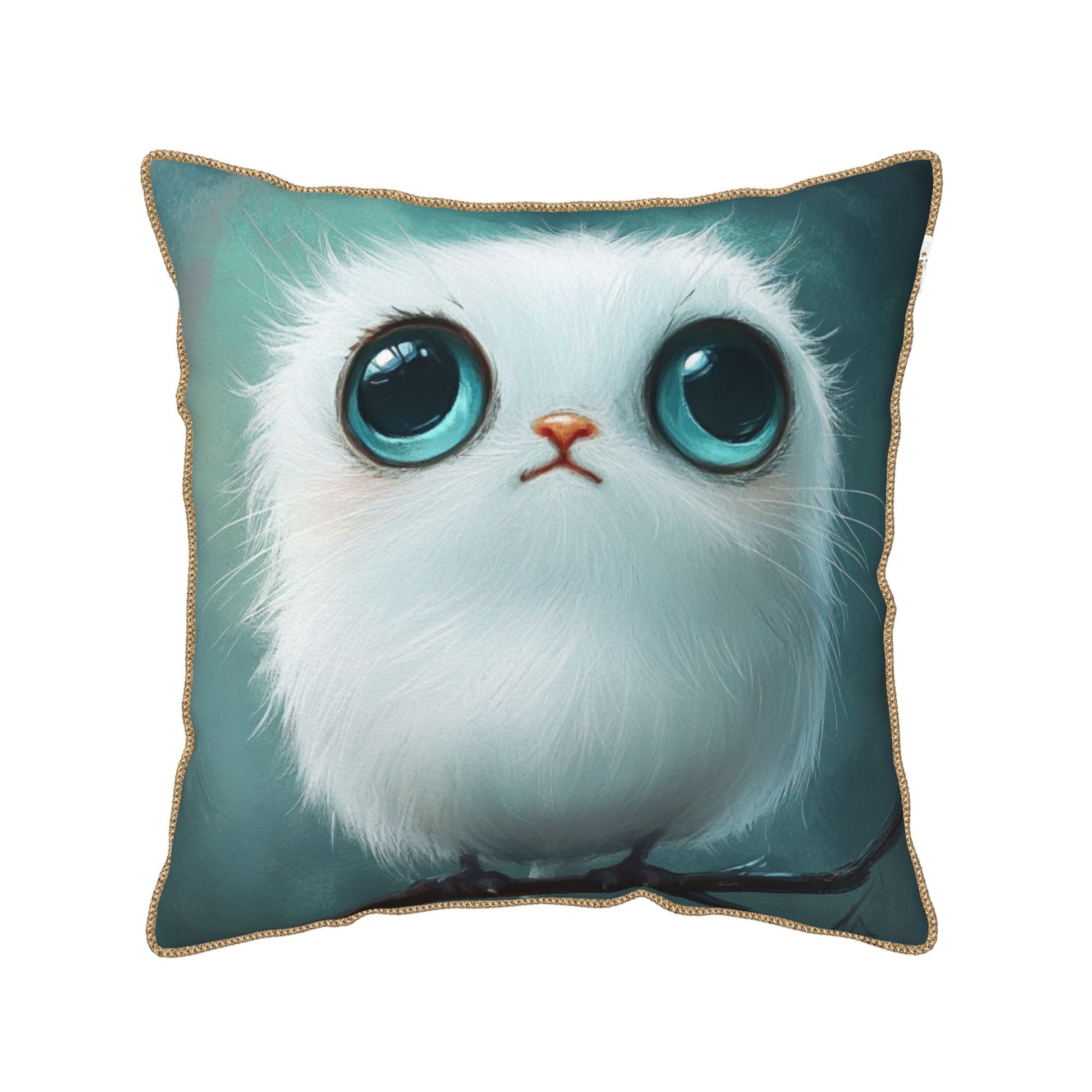 Cute Big-Eyed Fluffy Bird Digital Print Pillow Cover