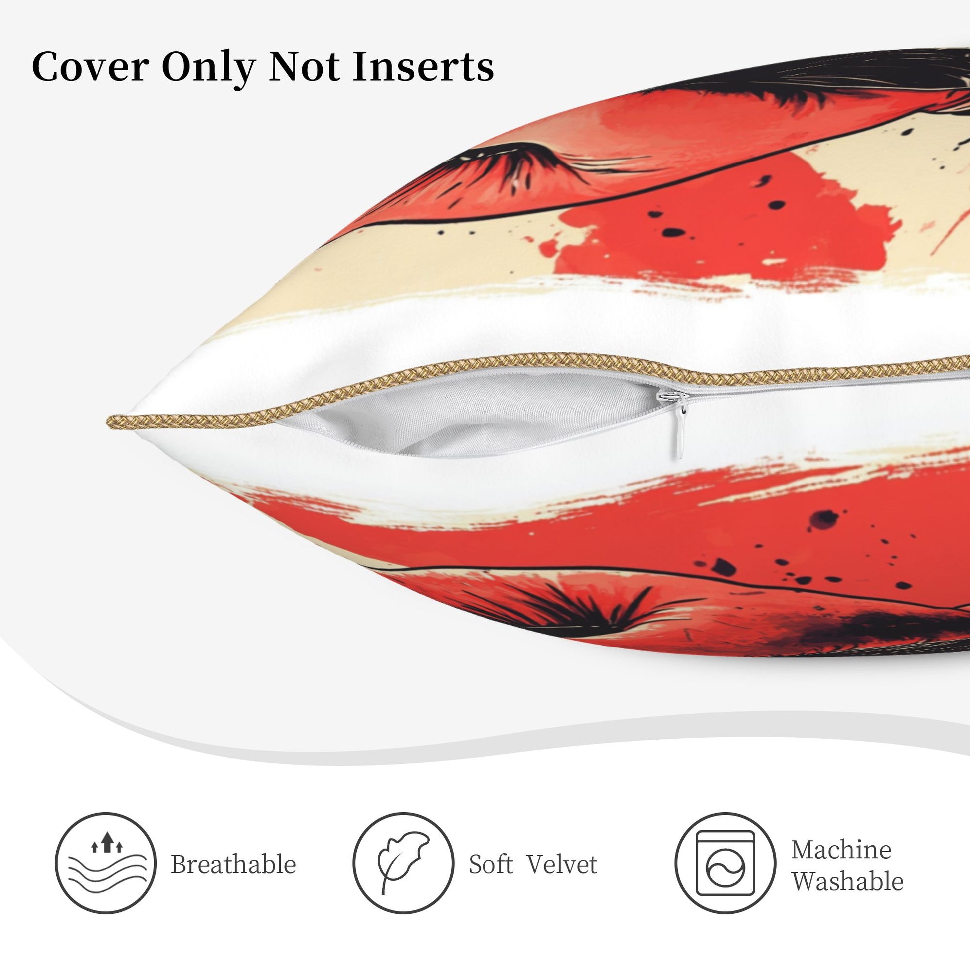 Gold piping around the edges adds a touch of elegance. Hidden back zipper ensures a seamless look and easy cover removal.